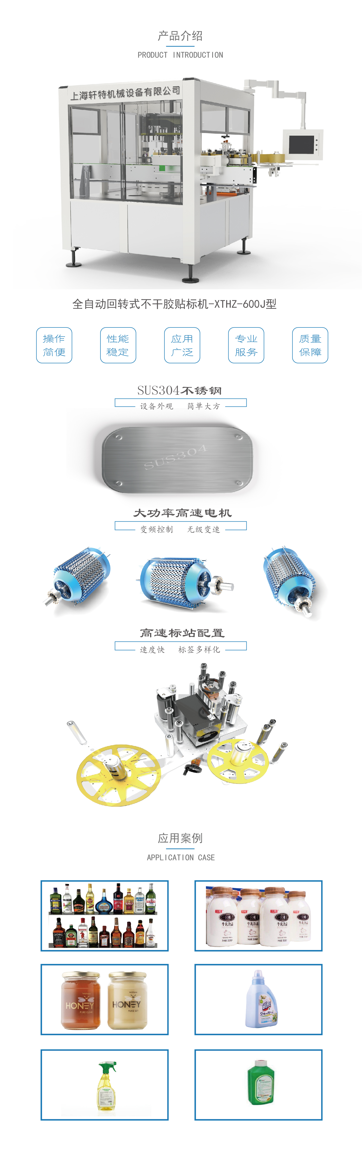 適應(yīng)于:圓形瓶子多標(biāo)簽定位高速自動貼標(biāo),方瓶一周高速自動貼標(biāo),以及其他復(fù)雜瓶型高精度的自動貼標(biāo)要求